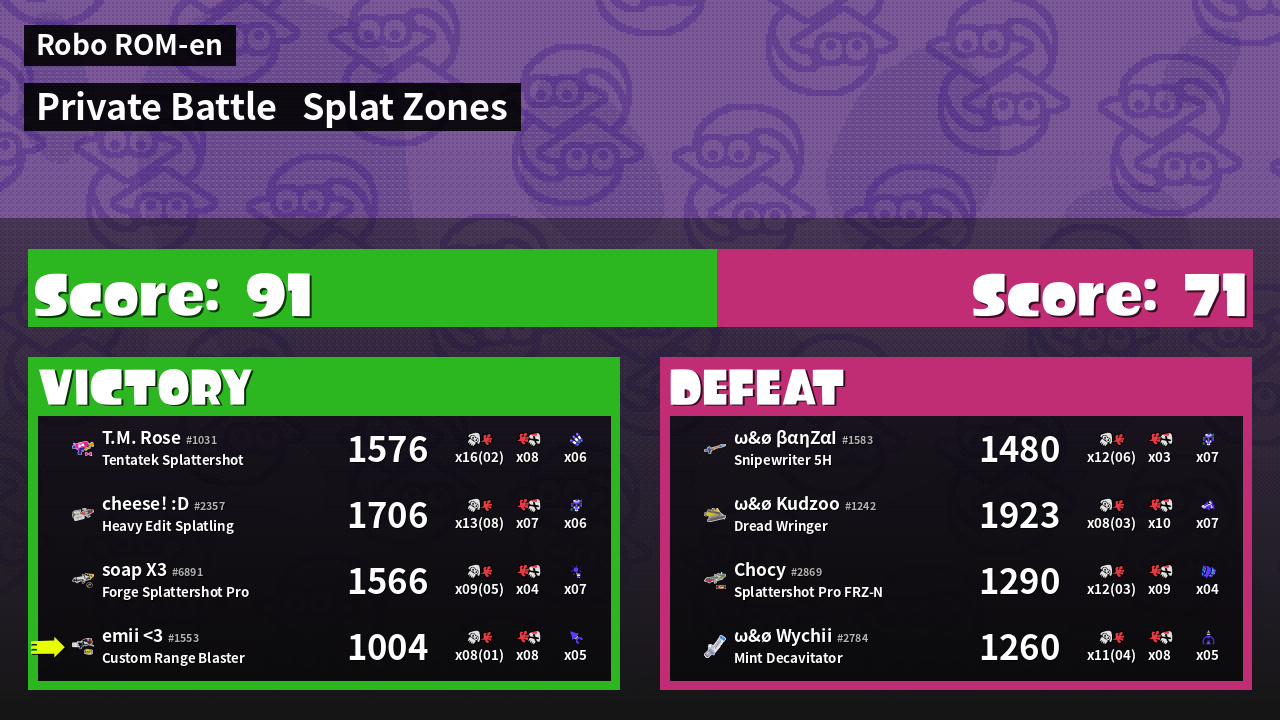 | Weapon | Custom Range Blaster ( Splat Bomb / Kraken Royale) | ||
