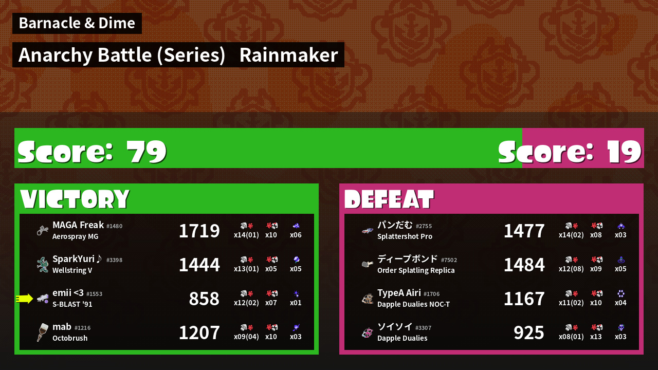 | Mode | Rainmaker - Anarchy Battle (Series) | ||