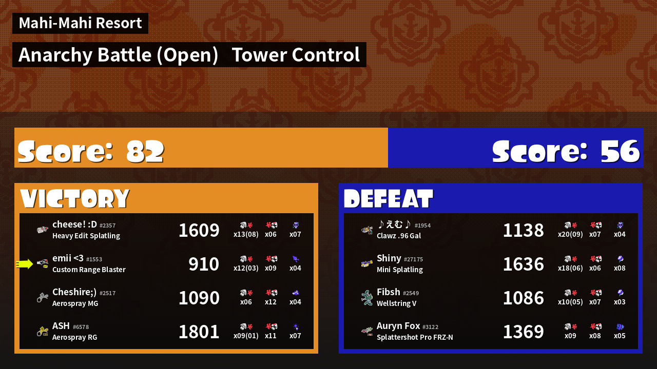 | Mode | Tower Control - Anarchy Battle (Open) | ||