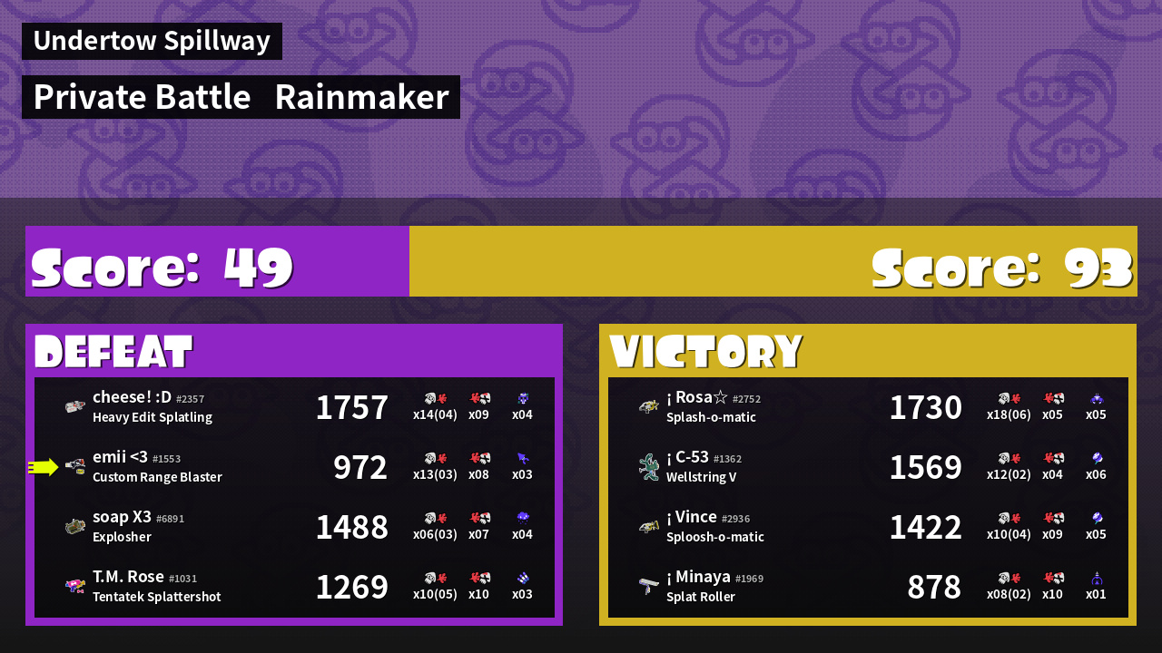 | Forgetful Youth  ¡ Minaya #1969 |  Splat Roller                    | 878 | 6 + 2 | 10 | 0.60 |  1 | |