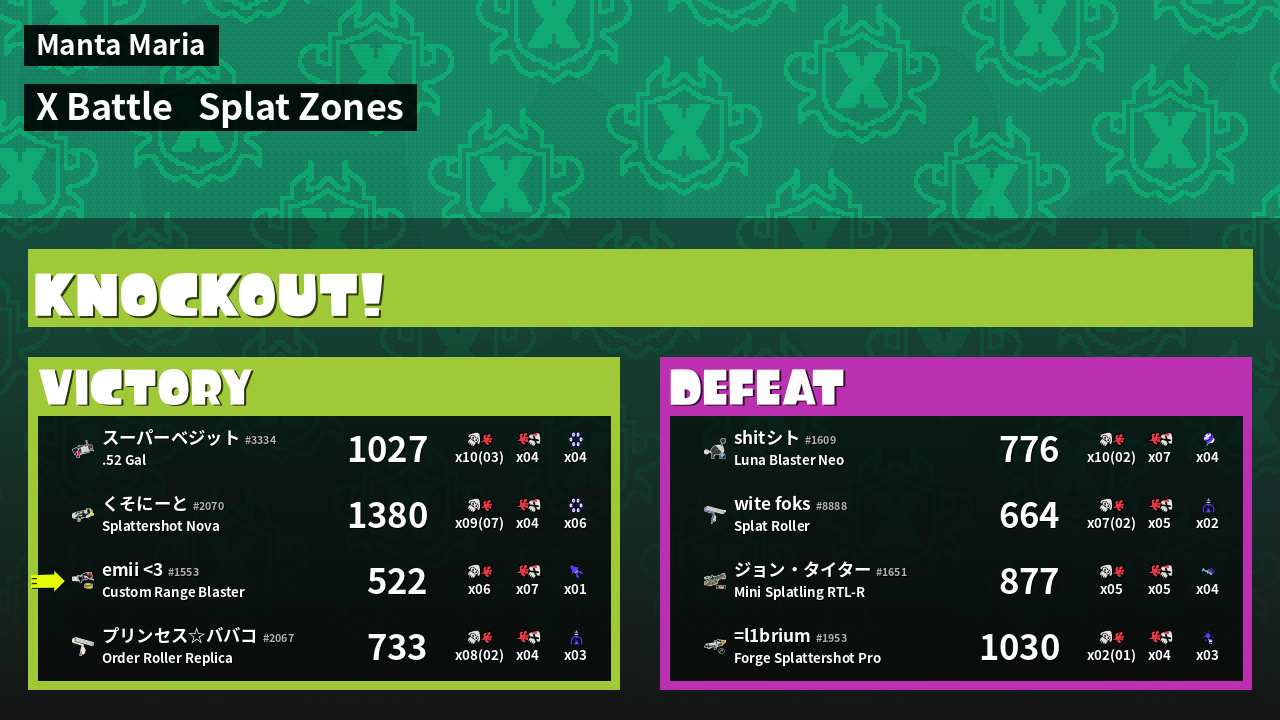 | Weapon | Custom Range Blaster ( Splat Bomb / Kraken Royale) | ||