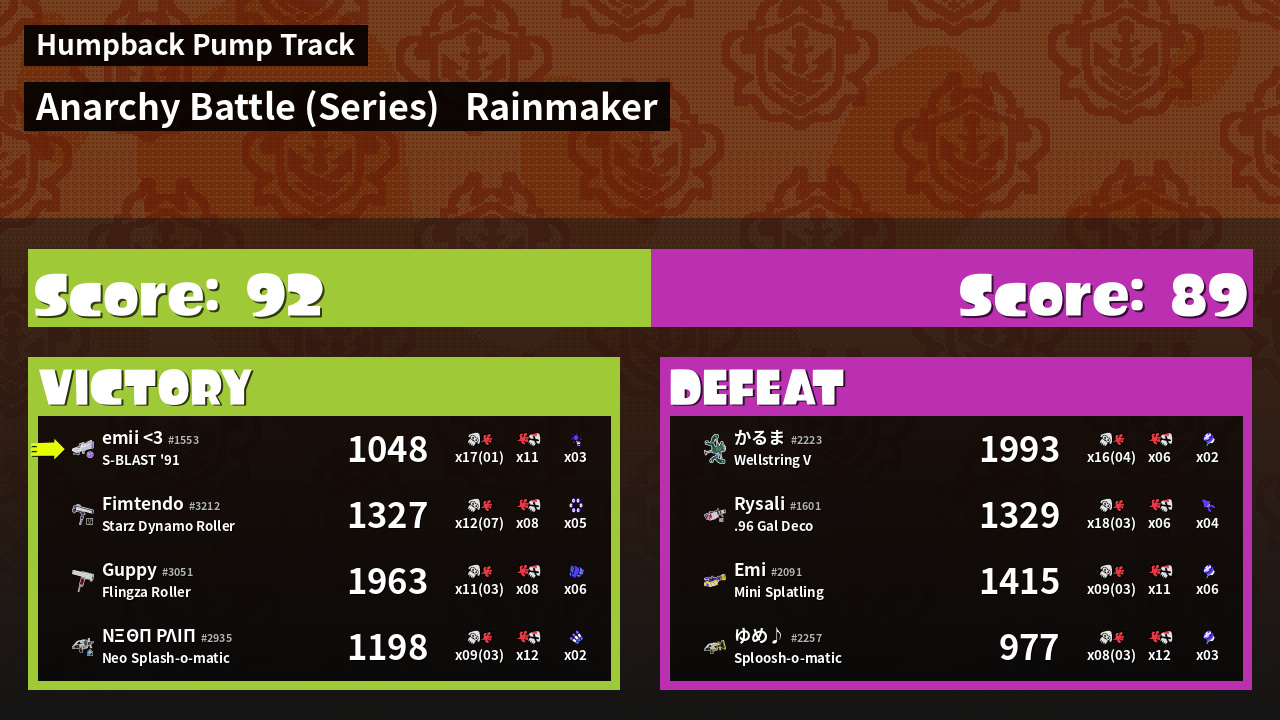 | Mode | Rainmaker - Anarchy Battle (Series) | ||
