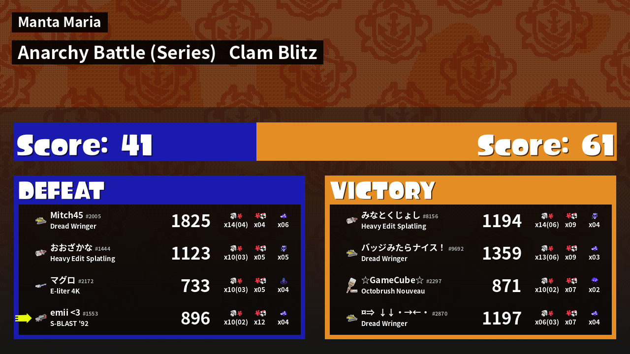 | Mode | Clam Blitz - Anarchy Battle (Series) | ||