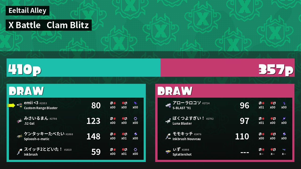 | Weapon | Custom Range Blaster ( Splat Bomb / Kraken Royale) | ||