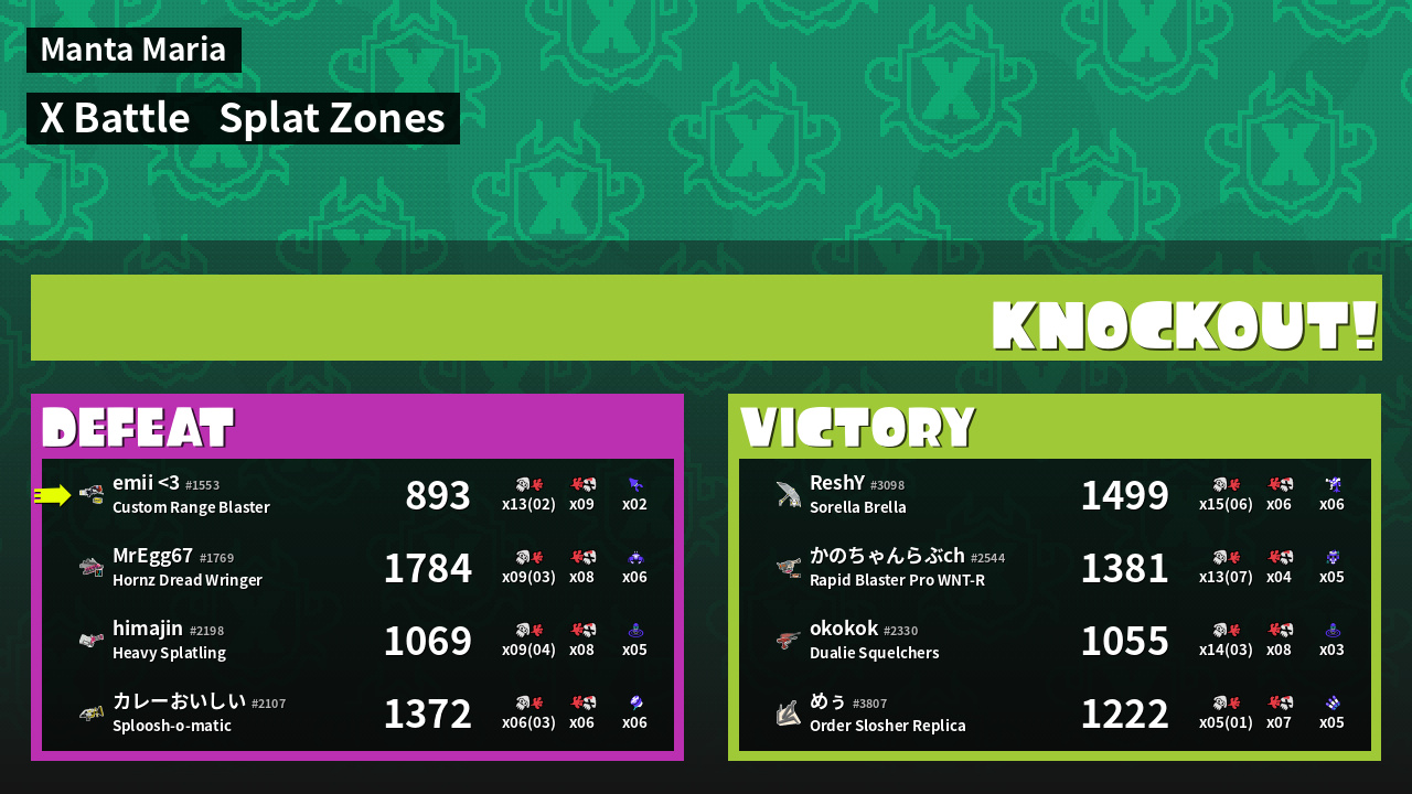 | Medals | #1 Overall Splatter #1 Splat Zone Guard #1 Enemy Splatter | ||