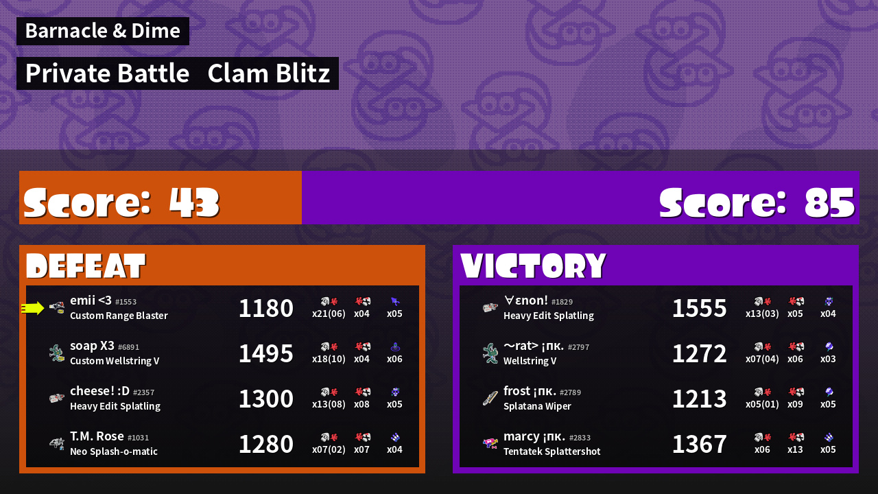 Kills / Deaths | 15 + 6 / 4 > Kill Ratio: 3.75 | ||
