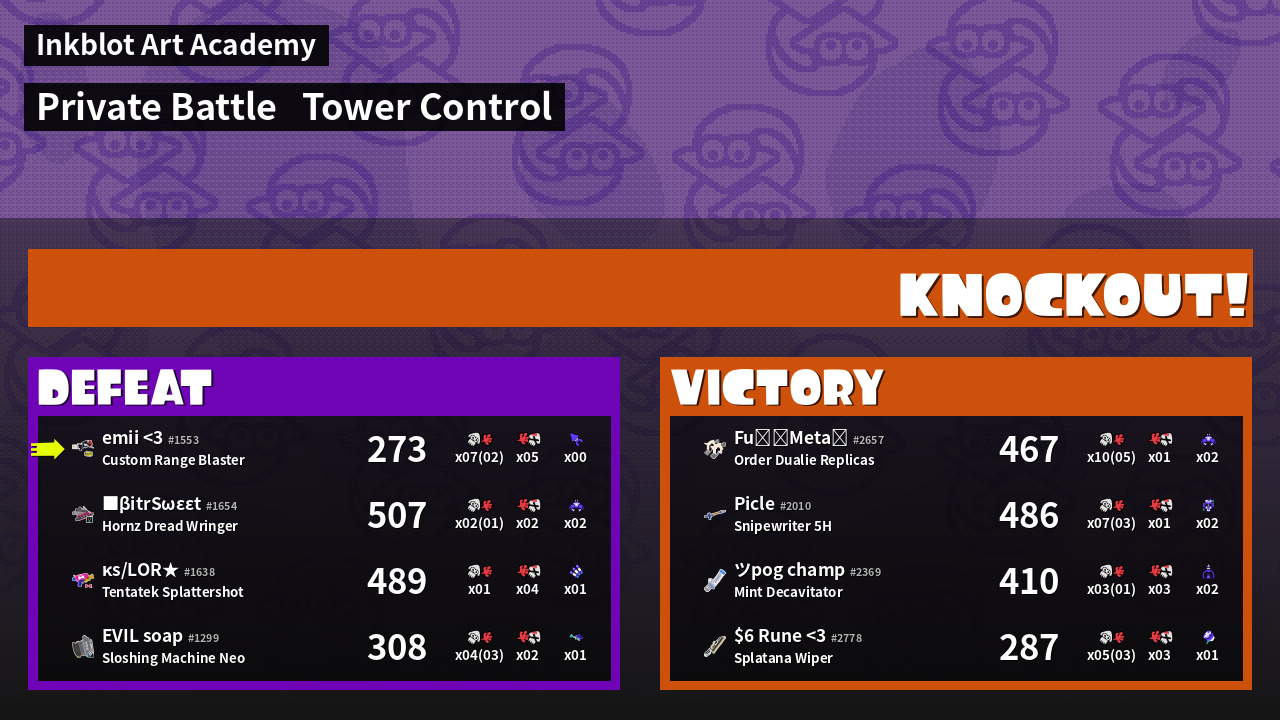 | Medals | #1 Overall Splatter #1 Enemy Splatter #1 Tower Stopper | ||