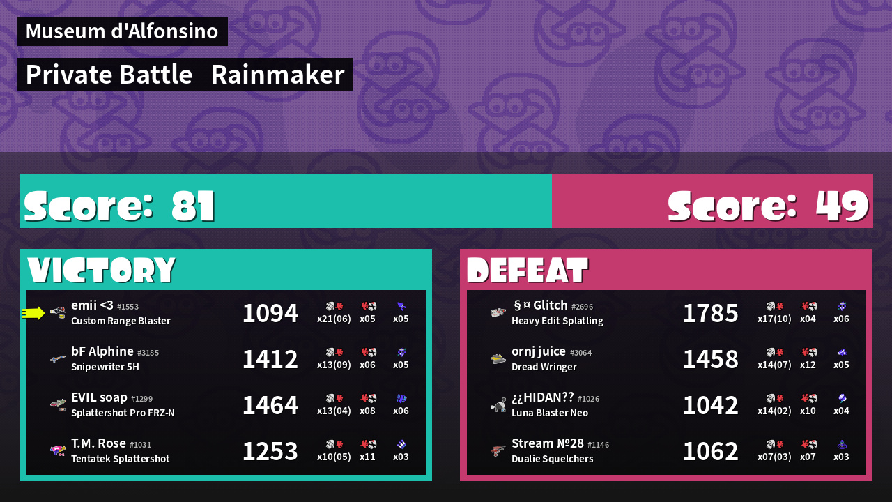 | Medals | #1 Overall Splatter #1 Popular Target #1 Super Jump Spot | ||