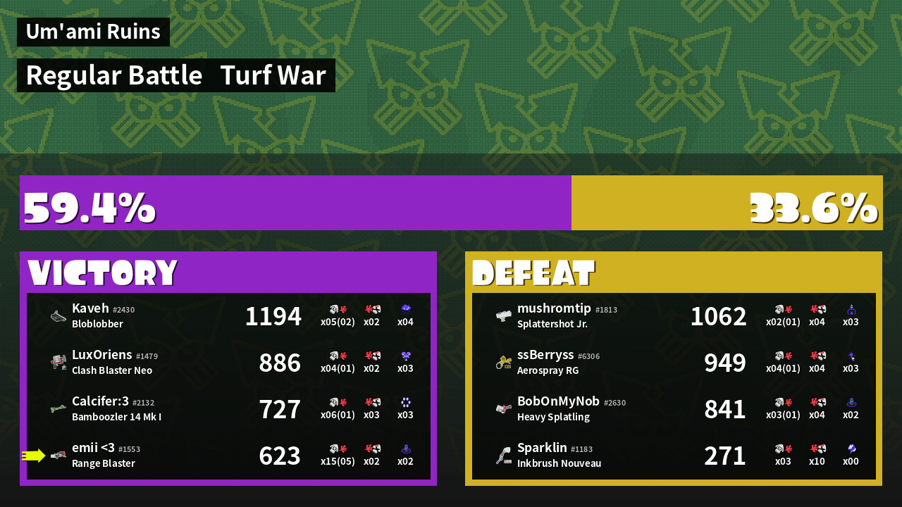 | Mode | Turf War - Regular Battle | ||