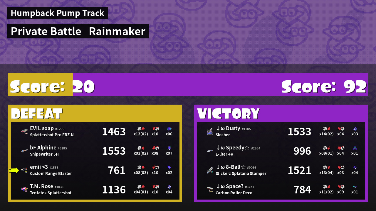 | Medals | #1 Super Jump Spot #1 Splat Assister #1 Ground Traveler | ||