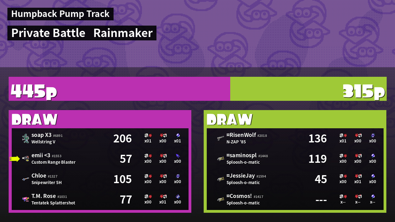 | Weapon | Custom Range Blaster ( Splat Bomb / Kraken Royale) | ||