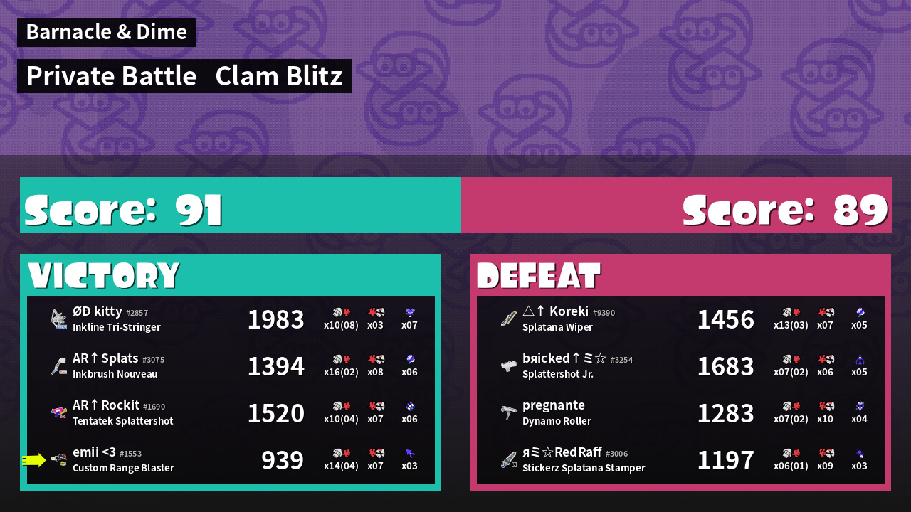 | Mode | Clam Blitz - Private Battle | ||