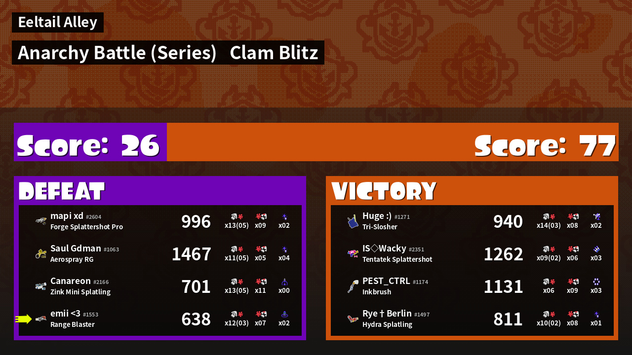 | Mode | Clam Blitz - Anarchy Battle (Series) | ||