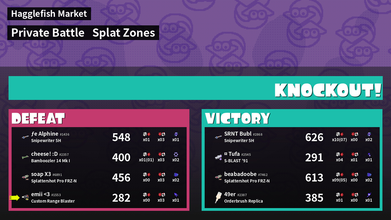 | Medals | #1 Splat Zone Hero #2 Popular Target | ||