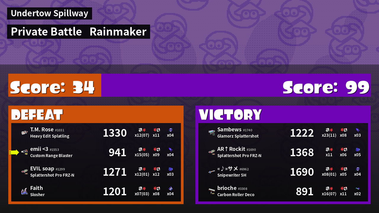 | Medals | #1 Overall Splatter #1 Popular Target #1 Rainmaker Stopper | ||