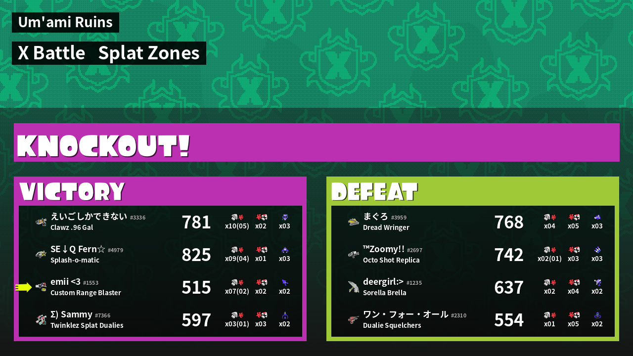 | Mode | Splat Zones - X Battle | ||