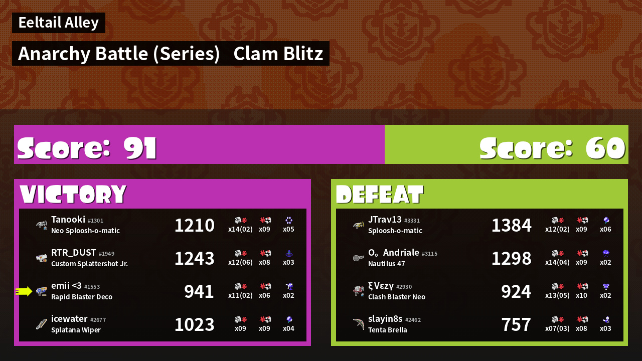 | Mode | Clam Blitz - Anarchy Battle (Series) | ||
