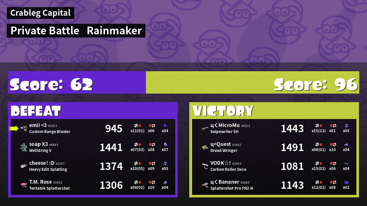 Kills / Deaths | 10 + 1 / 6 > Kill Ratio: 1.67 | ||