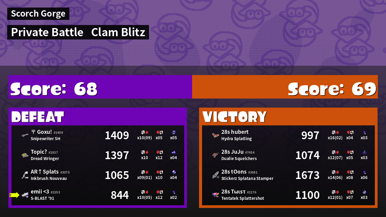 | Medals | #1 Overall Splatter First Splat! #2 Clam Carrier | ||