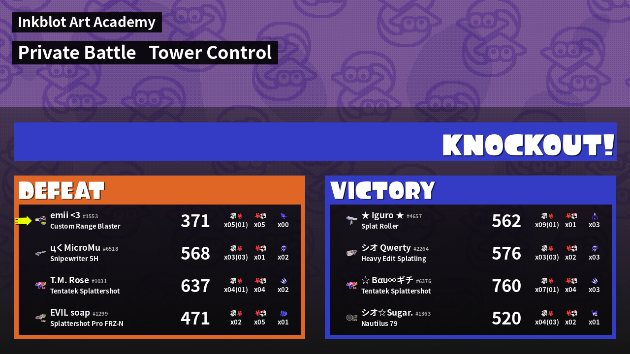 | Medals | #1 Overall Splatter #1 Super Jump Spot #1 Enemy Splatter | ||