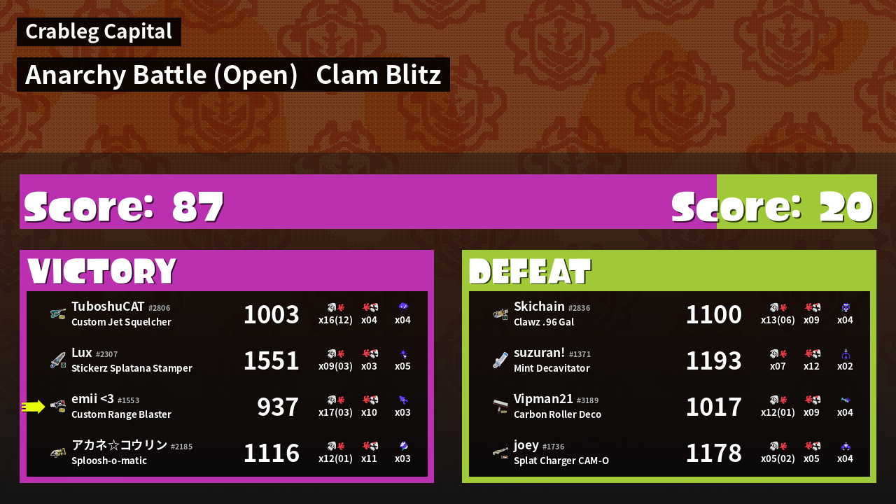 Kills / Deaths | 14 + 3 / 10 > Kill Ratio: 1.40 | ||