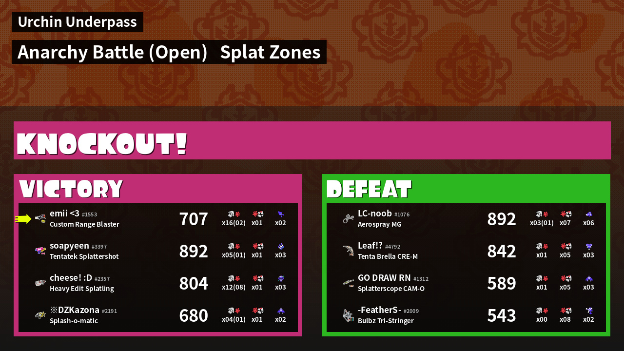 | Mode |    Splat Zones -   Anarchy Battle (Open) | ||