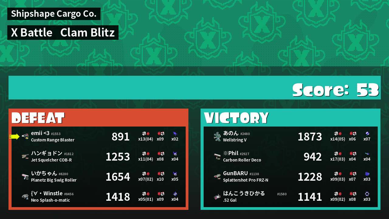 | Medals | #1 Overall Splatter #1 Enemy Splatter #1 Splat Assister | ||
