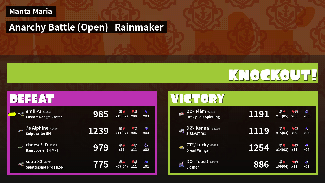 | Mode | Rainmaker - Anarchy Battle (Open) | ||