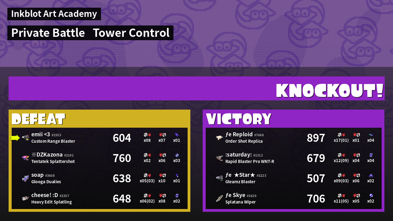 | Medals | #1 Overall Splatter #1 Popular Target #1 Enemy Splatter | ||