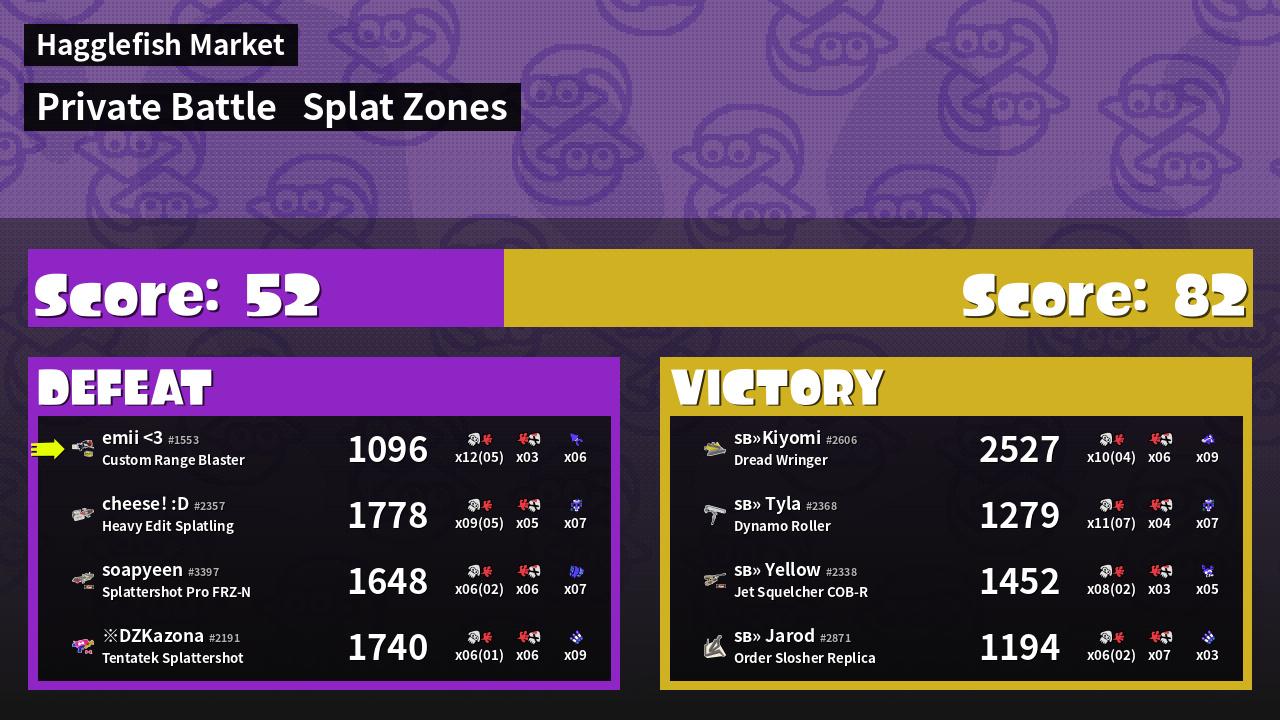 | Mode | Splat Zones - Private Battle | ||