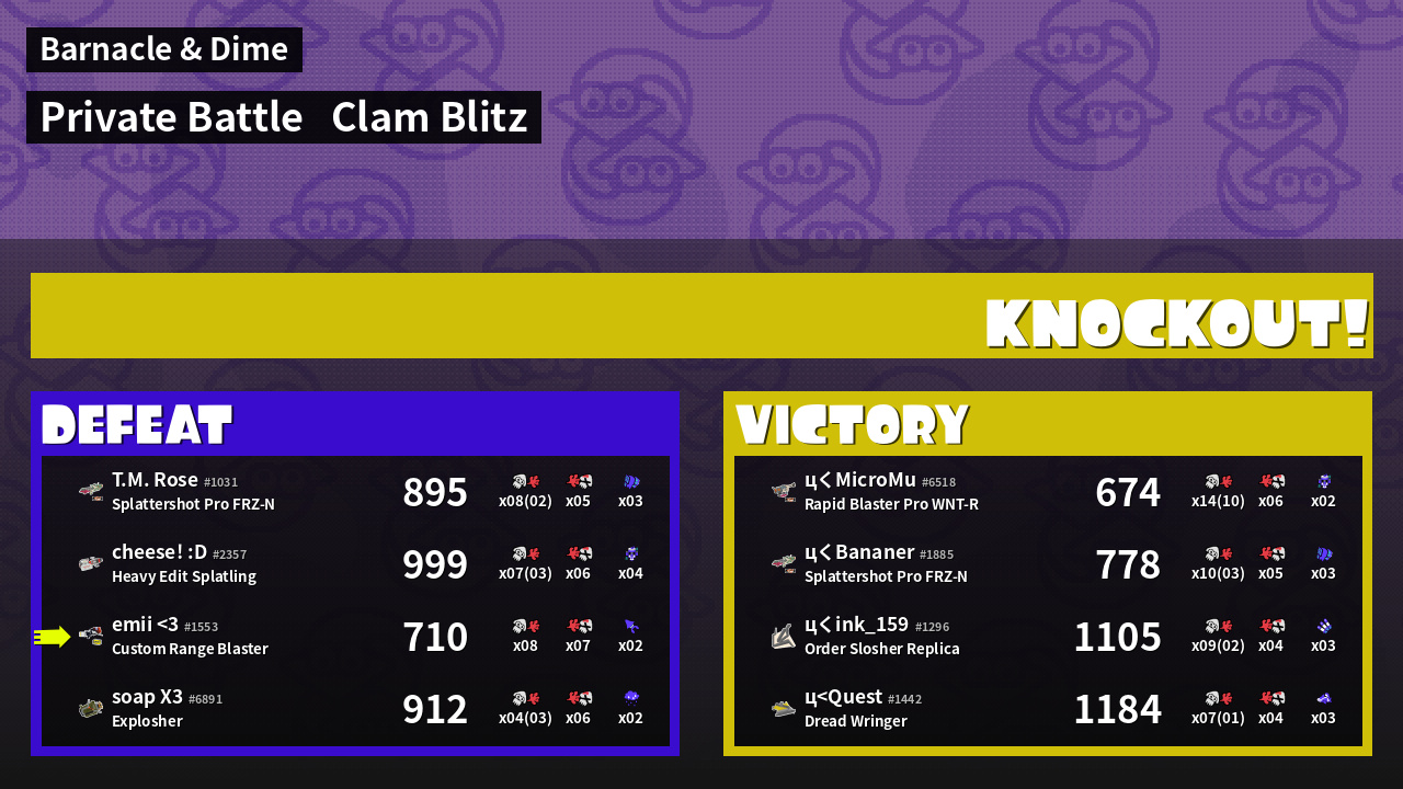 Kills / Deaths | 8 + 0 / 7 > Kill Ratio: 1.14 | ||
