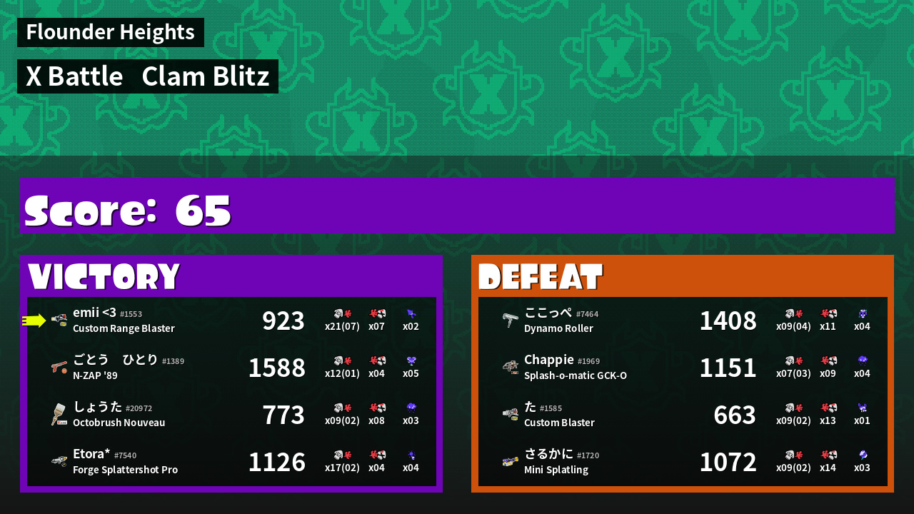 | Mode | Clam Blitz - X Battle | ||