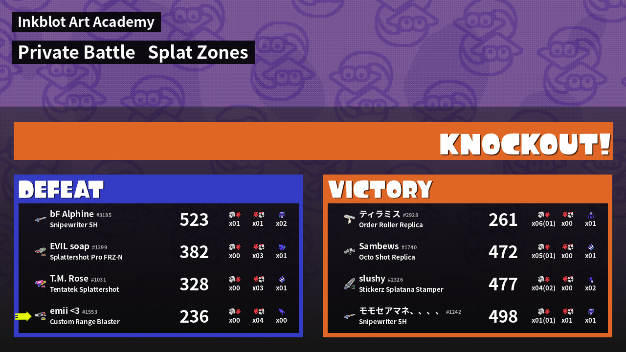 | Mode | Splat Zones - Private Battle | ||