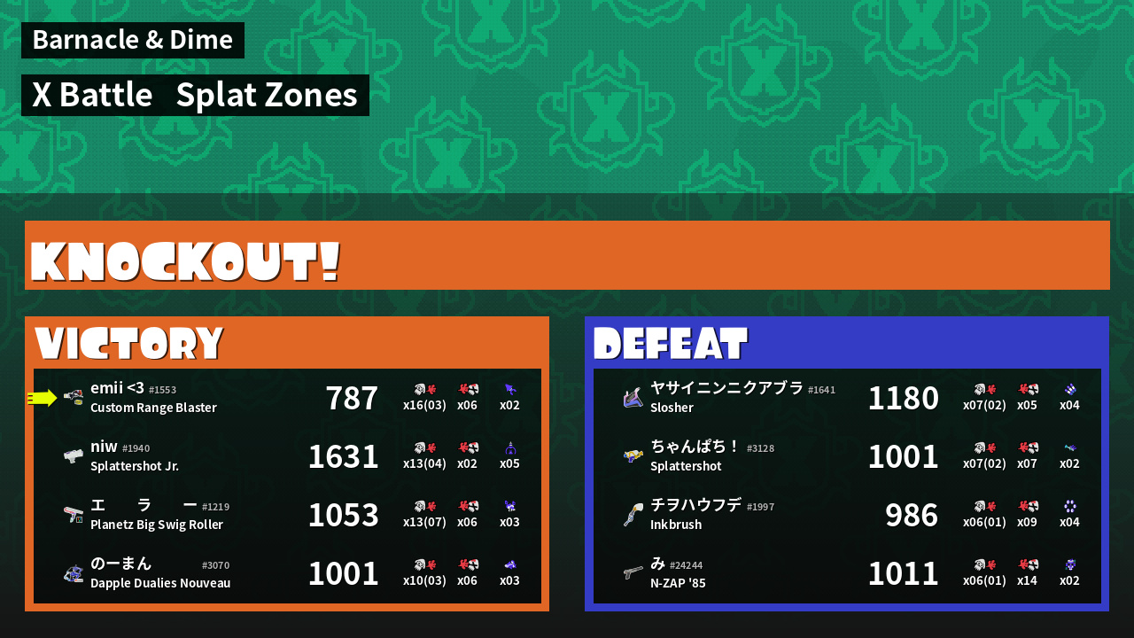 | Medals | #1 Overall Splatter #1 Splat Zone Guard #1 Popular Target | ||
