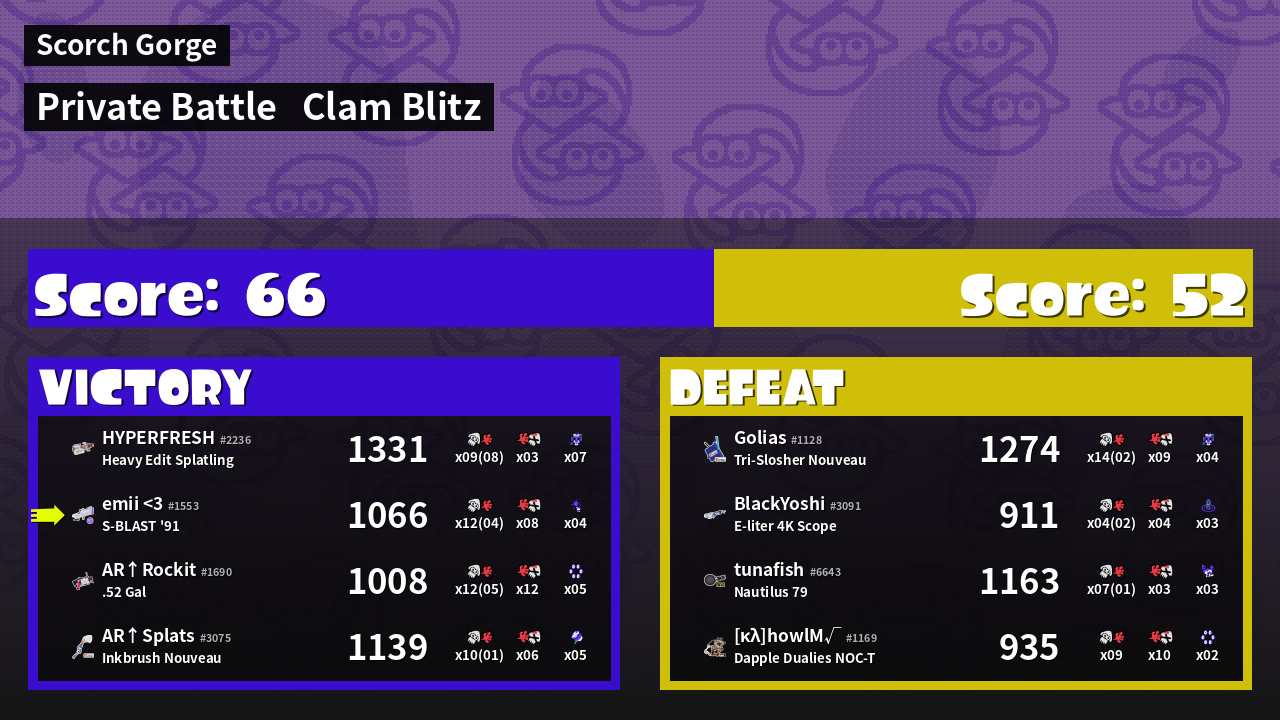 | Mode | Clam Blitz - Private Battle | ||