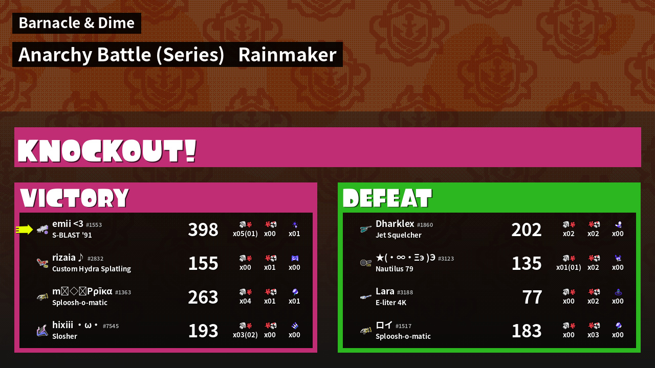 | Mode | Rainmaker - Anarchy Battle (Series) | ||