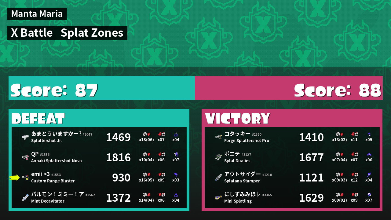 | Medals | #1 Splat Zone Guard #1 Kraken Royale User #2 Overall Splatter | ||