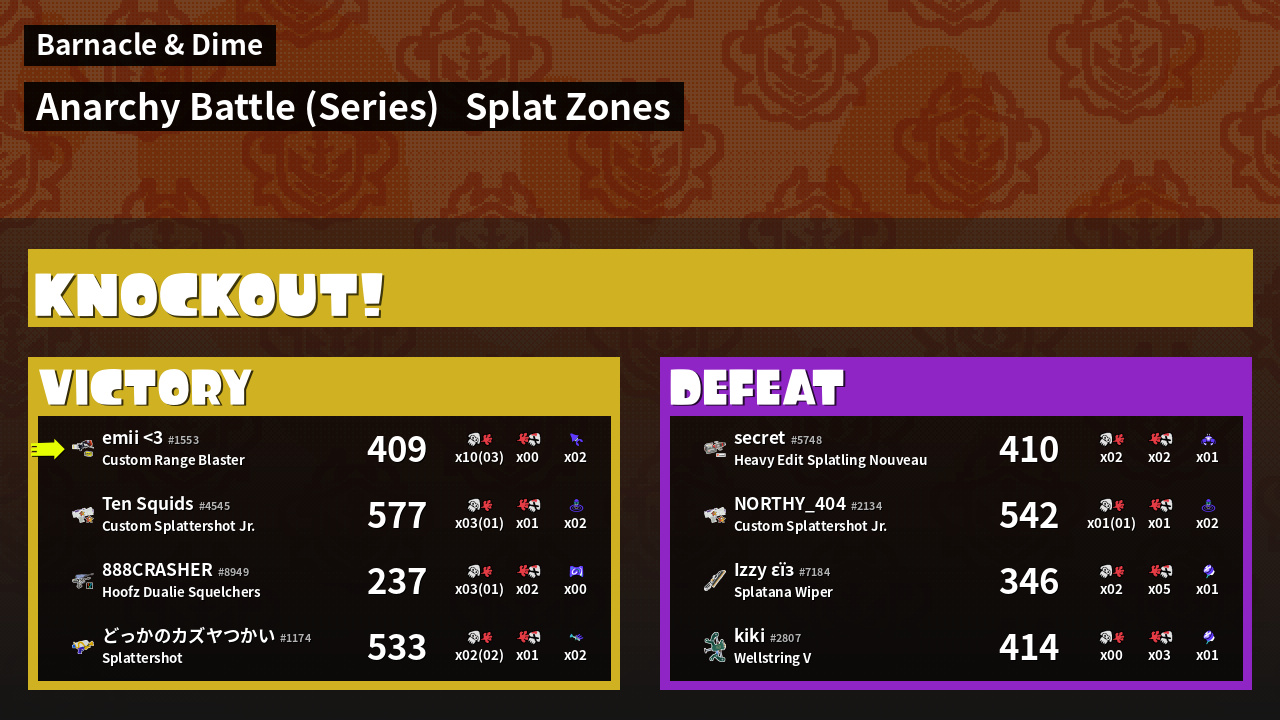 | Mode | Splat Zones - Anarchy Battle (Series) | ||