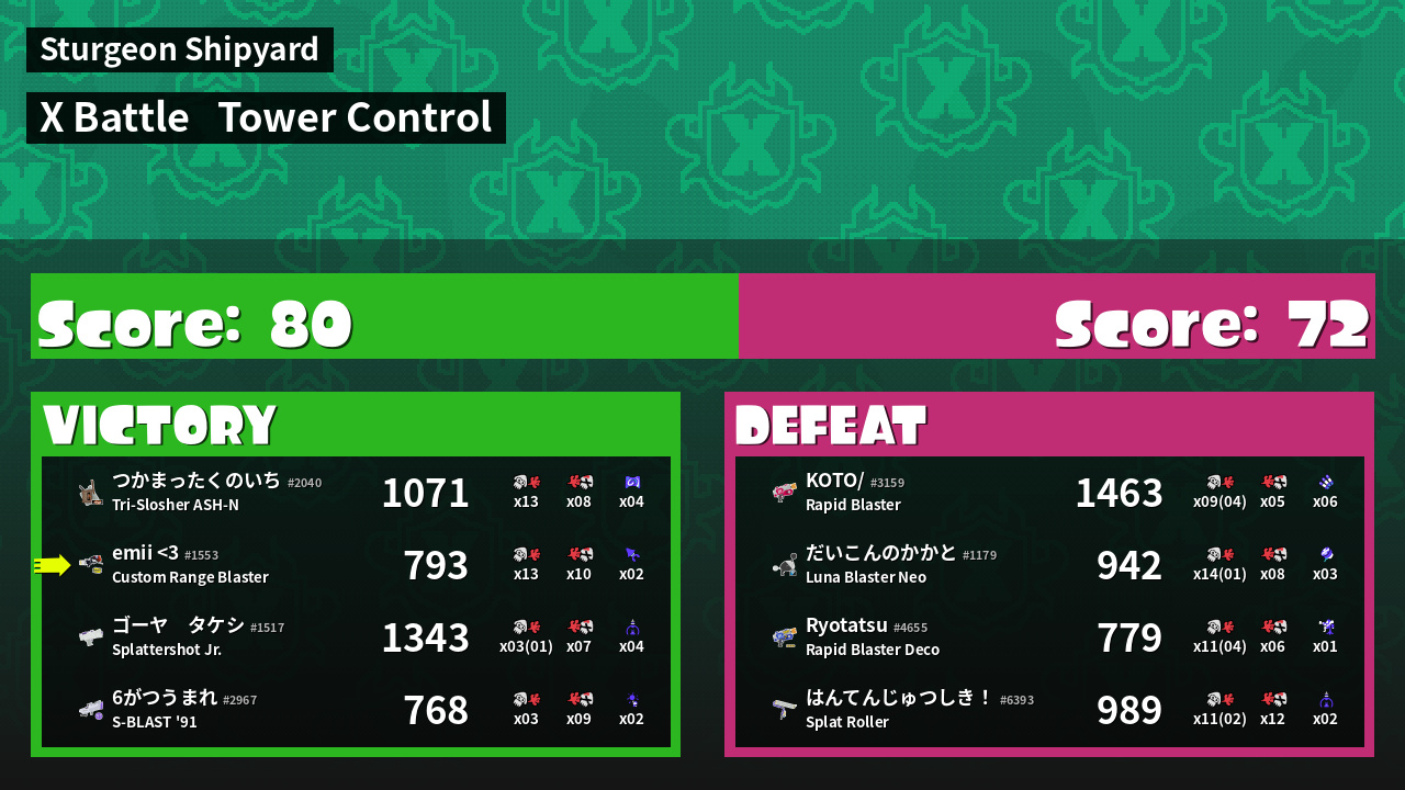 | Medals | #1 Overall Splatter #1 Popular Target #1 Enemy Splatter | ||