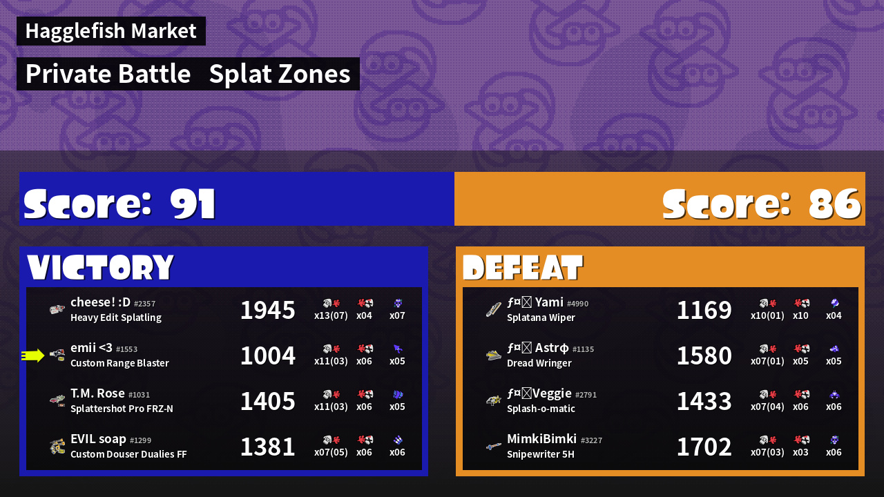 | Medals | #1 Splat Zone Guard #1 Super Jump Spot #1 Enemy Splatter | ||