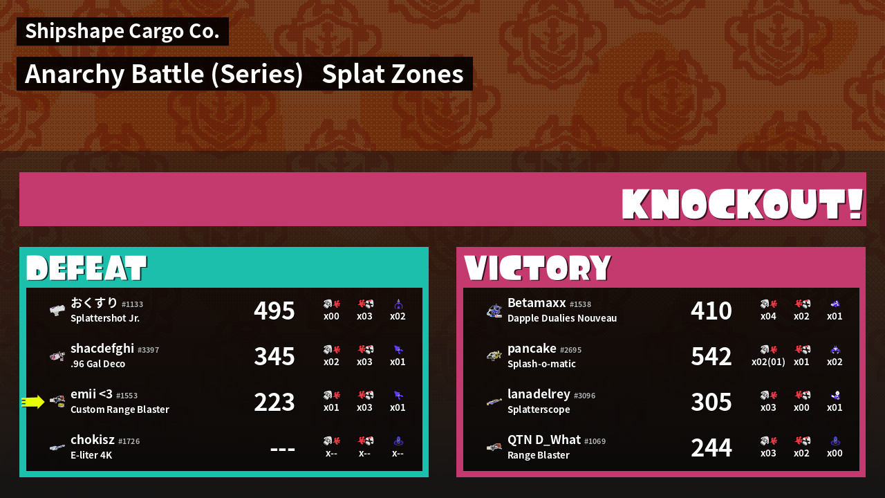 | Mode | Splat Zones - Anarchy Battle (Series) | ||