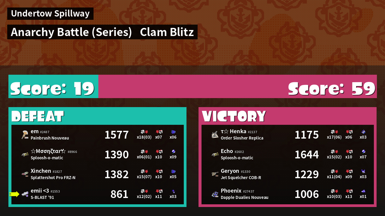| Mode | Clam Blitz - Anarchy Battle (Series) | ||
