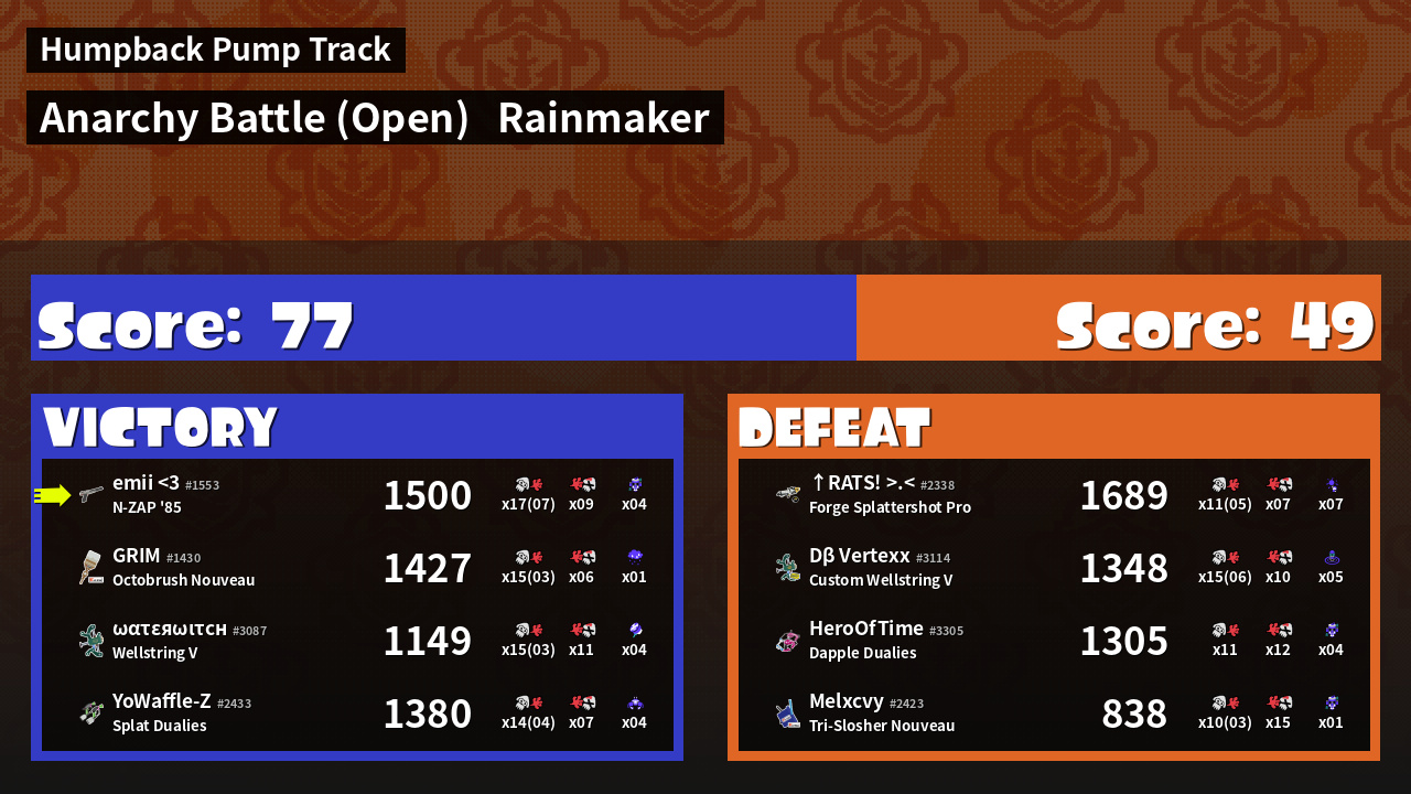 | Mode | Rainmaker - Anarchy Battle (Open) | ||