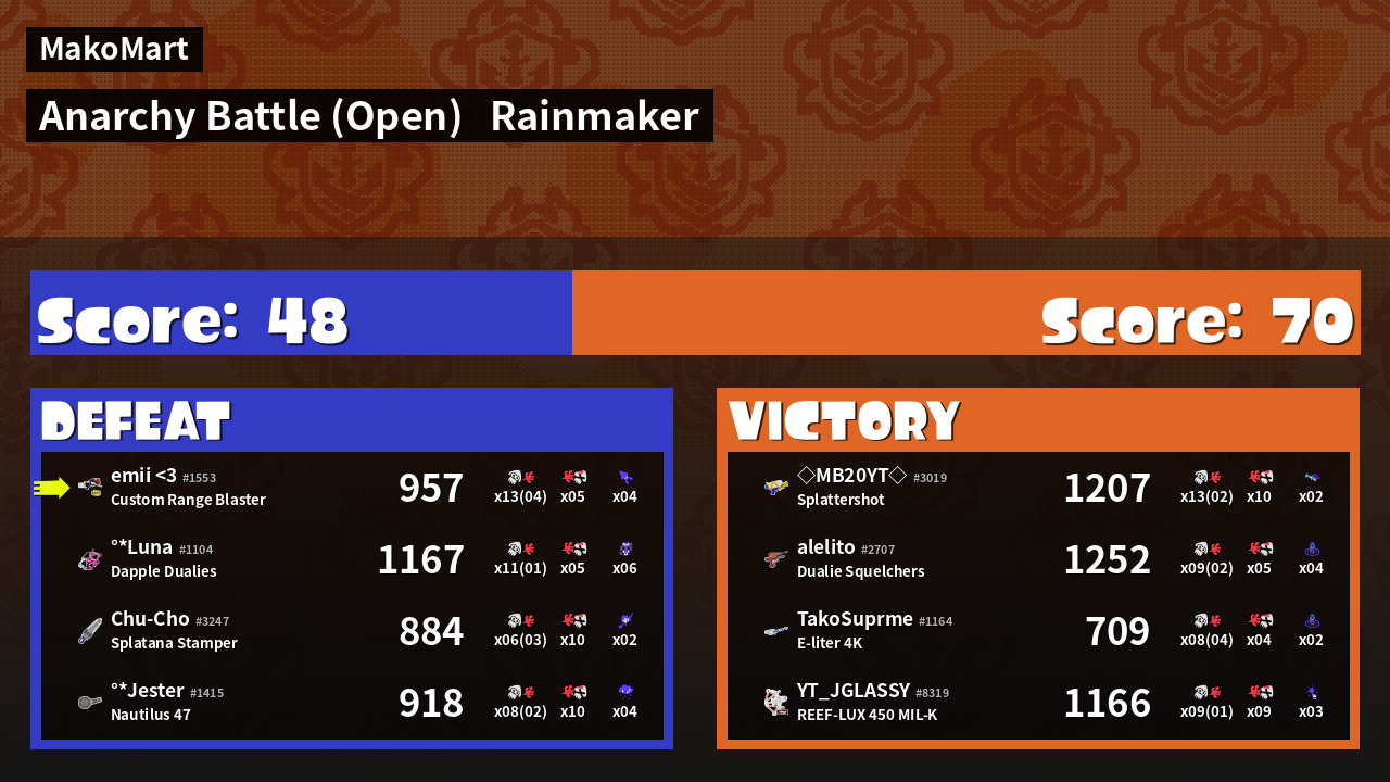 | Mode | Rainmaker - Anarchy Battle (Open) | ||