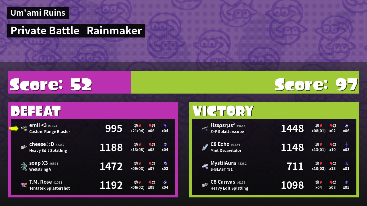 Kills / Deaths | 17 + 4 / 6 > Kill Ratio: 2.83 | ||