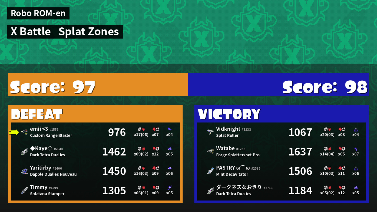 | Medals | #1 Overall Splatter #1 Splat Zone Guard #1 Popular Target | ||