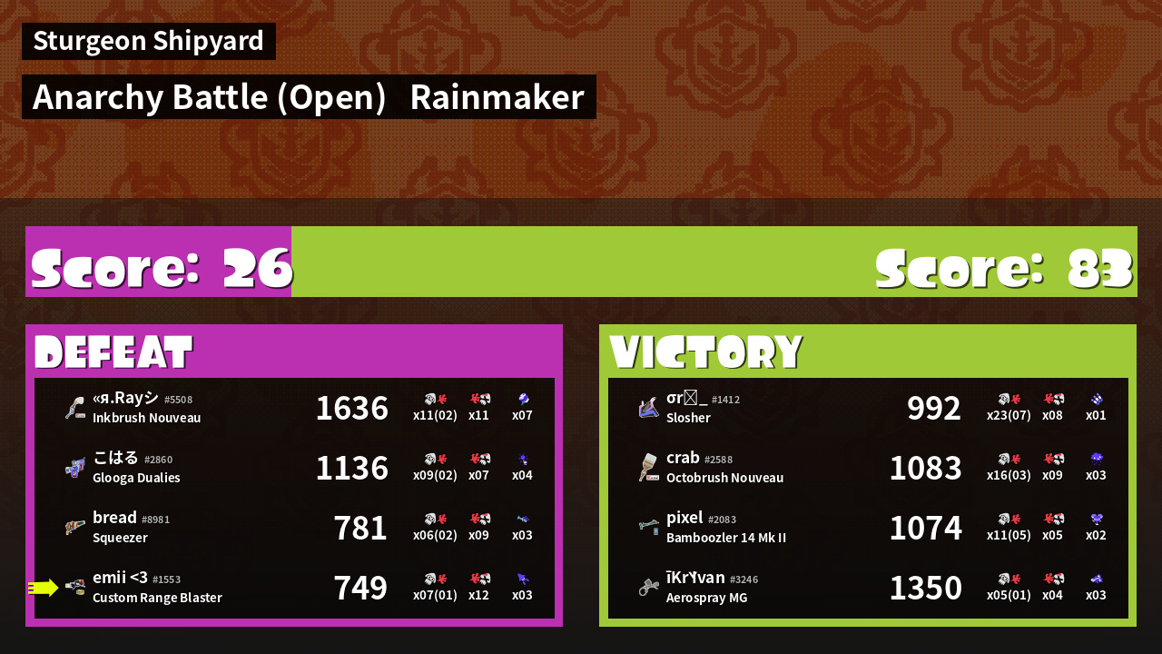 Name | Weapon | Inked | ![]() |