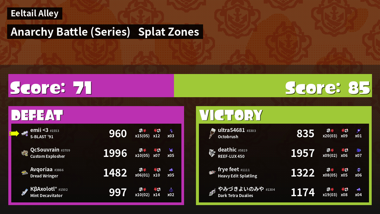 | Mode | Splat Zones - Anarchy Battle (Series) | ||