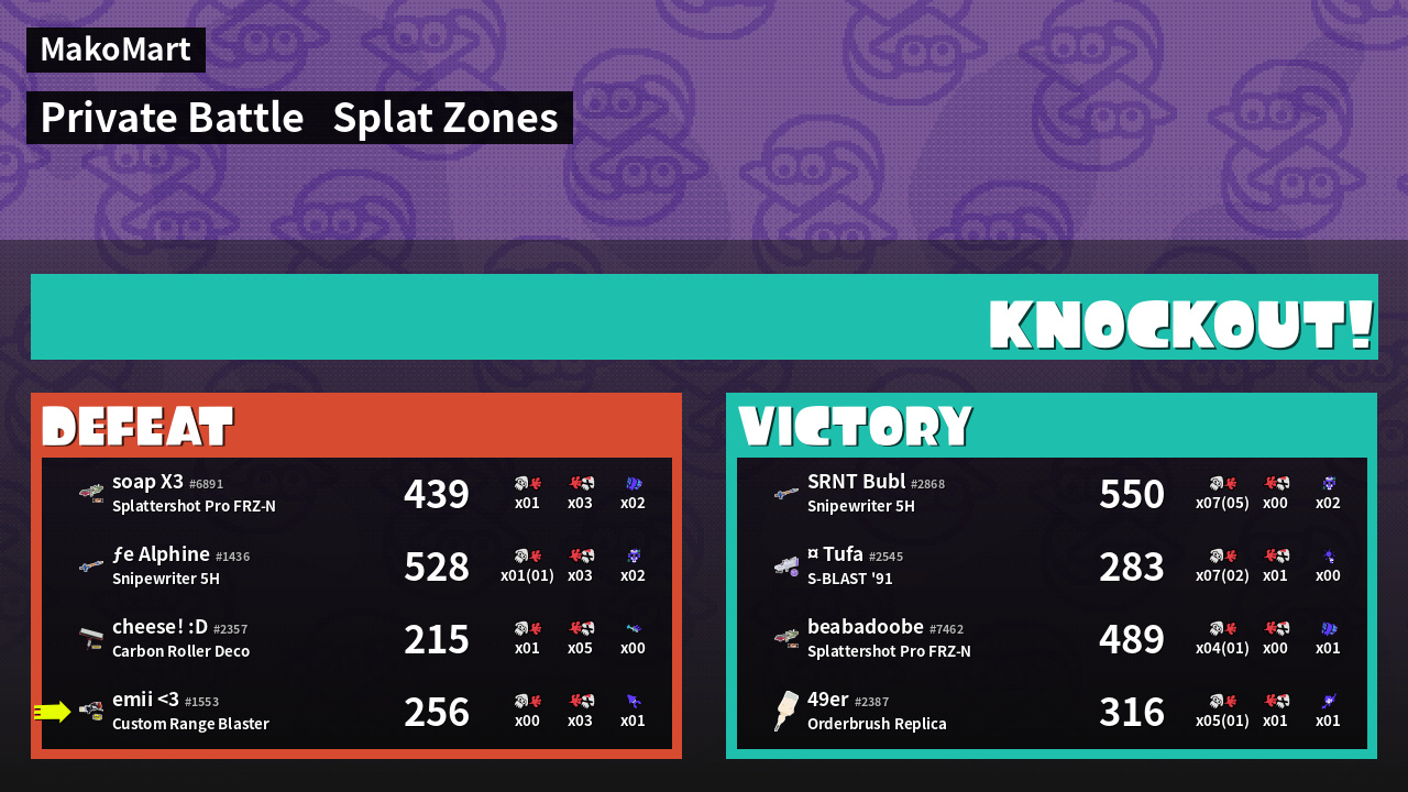 | Weapon | Custom Range Blaster ( Splat Bomb / Kraken Royale) | ||