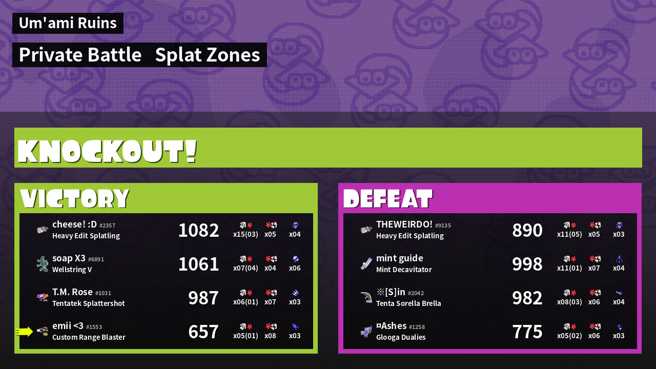 | Weapon | Custom Range Blaster ( Splat Bomb / Kraken Royale) | ||